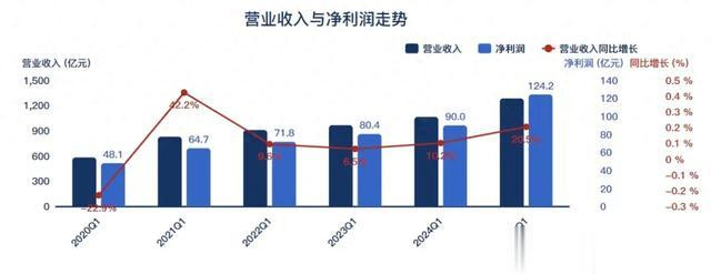 2025年Q1营业收入1284.28亿,同比增长20.61%;净利124.22亿,同比增长38.02%。