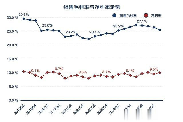 2、毛利率出现了连续多个季度环比下降。2025年Q1净利率水平与2019-2020年接近,但优于其他年度的同期水平。