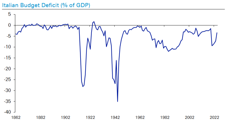 意大利的上一次预算盈余更要追溯到近一个世纪前的1925年。